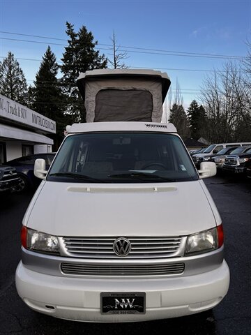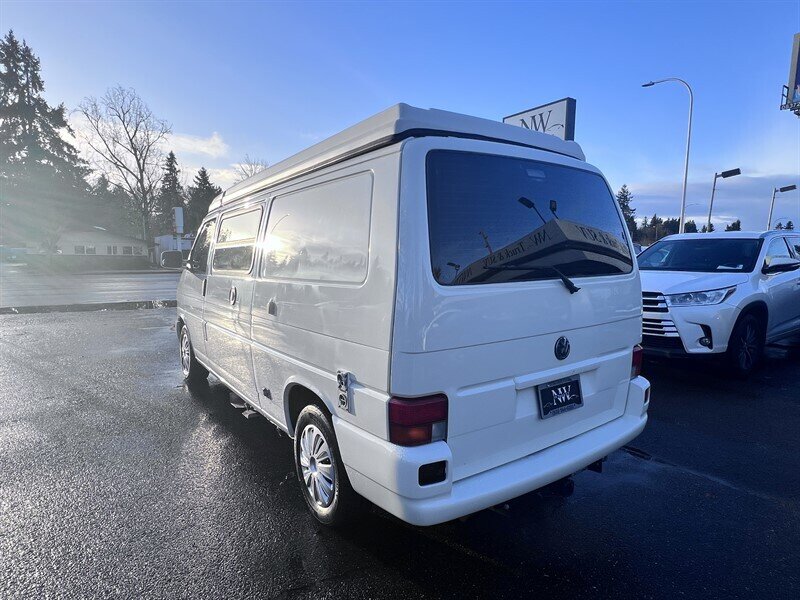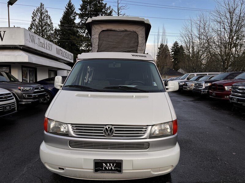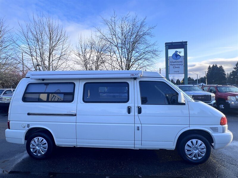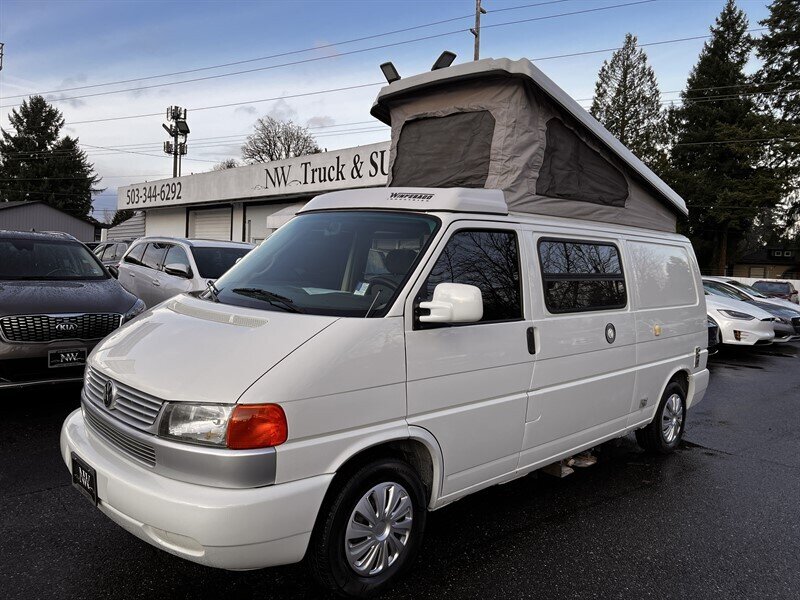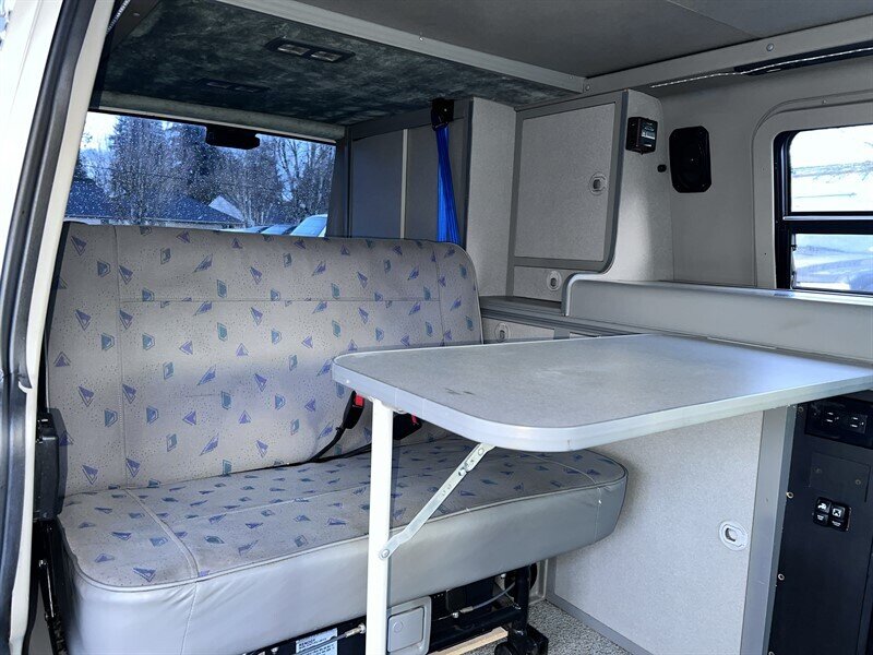 Introducing the 1997 Volkswagen EuroVan Campmobile – a classic van camper that effortlessly combines comfort and functionality for your adventures on the road. This model features a robust 2L NA V6 engine with a single overhead cam (SOHC) configuration, delivering reliable performance for all your travels.