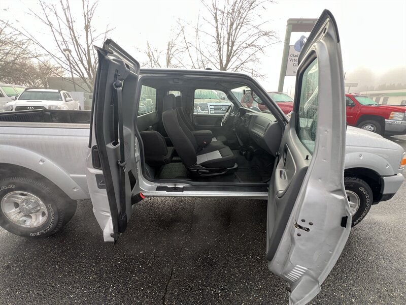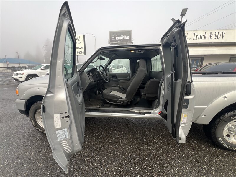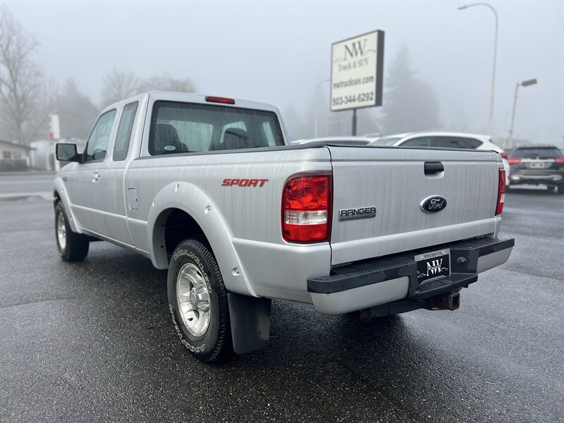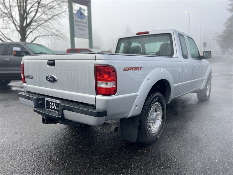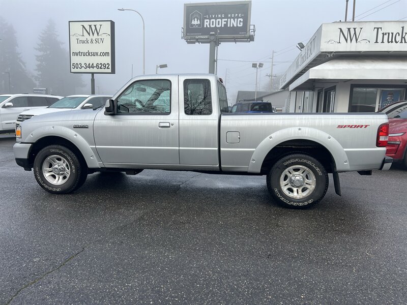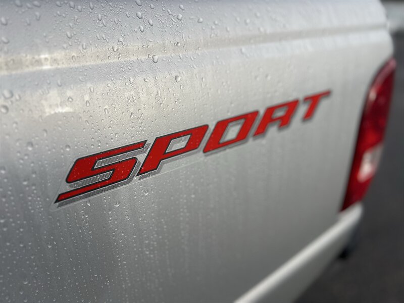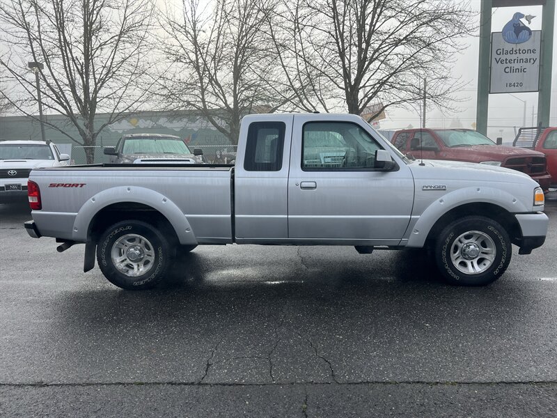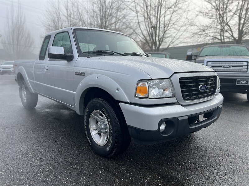 2009 Ford Ranger Sport in Silver Clearcoat Metallic with a Medium Dark Flint cloth interior — under 34,000 miles (averaging less than 2,000 miles per year), excellent overall condition and a clean CARFAX. Powered by the factory 4.0L V6 (207 hp / 238 ft-lb) mated to a five-speed manual transmission and rear-wheel drive. Factory equipment includes manual crank windows and manual door locks, air conditioning, AM/FM stereo with single-disc CD player and auxiliary input, tilt steering column, cloth seating, three-point seat belts and front airbags, power steering, intermittent wipers and standard exterior lighting — all original to the Sport trim.