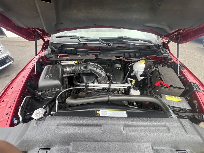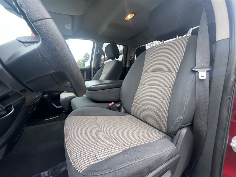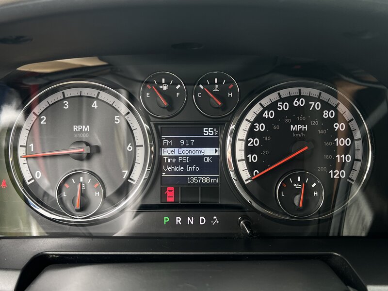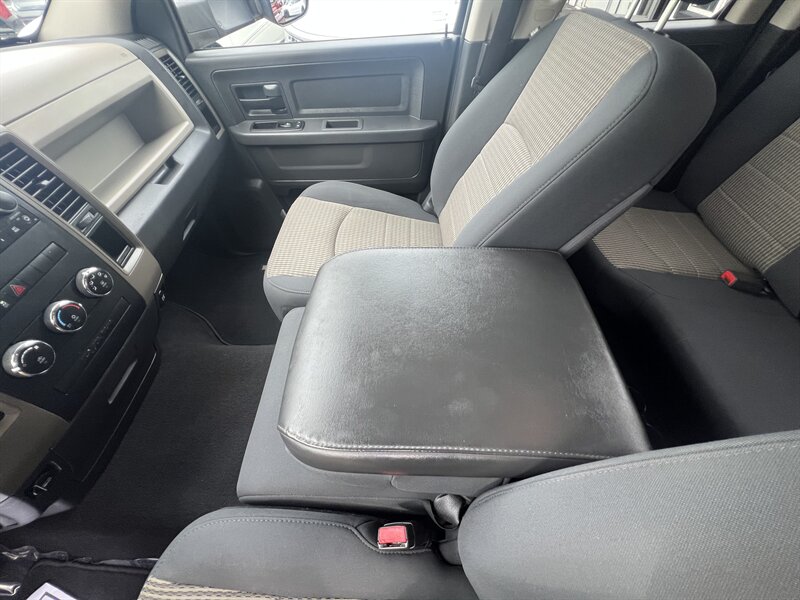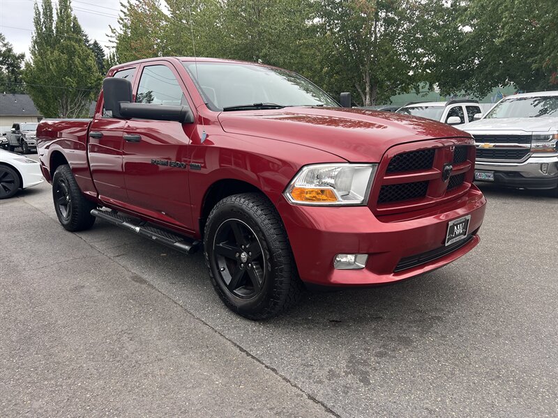 2012 RAM 1500 Tradesman with the 5.7L HEMI V8 (390 hp / 407 lb-ft) and 4x4 drivetrain, paired with a 3.55 rear axle ratio, Class IV receiver hitch and integrated trailer brake control for towing. Factory equipment includes 4-wheel disc brakes with ABS and brake assist, electronic stability control, front and side airbags plus overhead/occupant sensing airbags, power heated mirrors, remote keyless entry, air conditioning, tilt steering, Uconnect 130 AM/FM/CD/MP3 with Bluetooth and voice command, backup camera, SIRIUS satellite radio, instrument cluster display with tire pressure monitoring, and a 40/20/40 split bench seat in Dark Slate/Medium Graystone. Finished in Burgundy exterior, this truck has a clean CARFAX and clean title, under 136,000 miles (averaging <10,000 miles/year) and is in excellent overall condition.