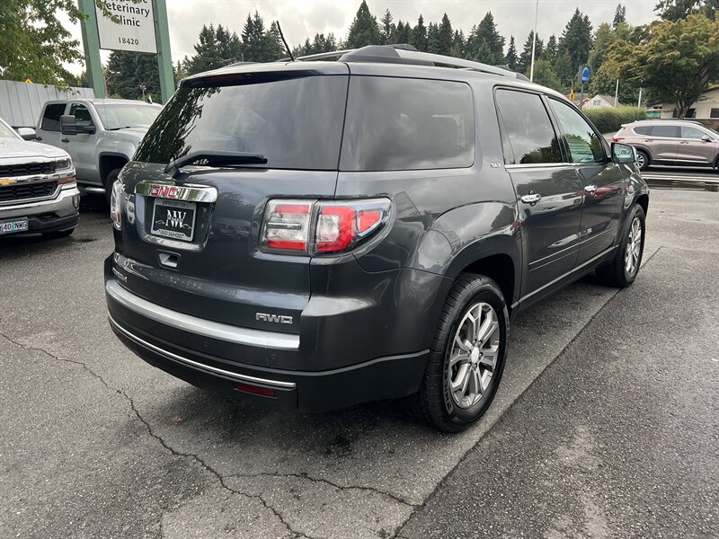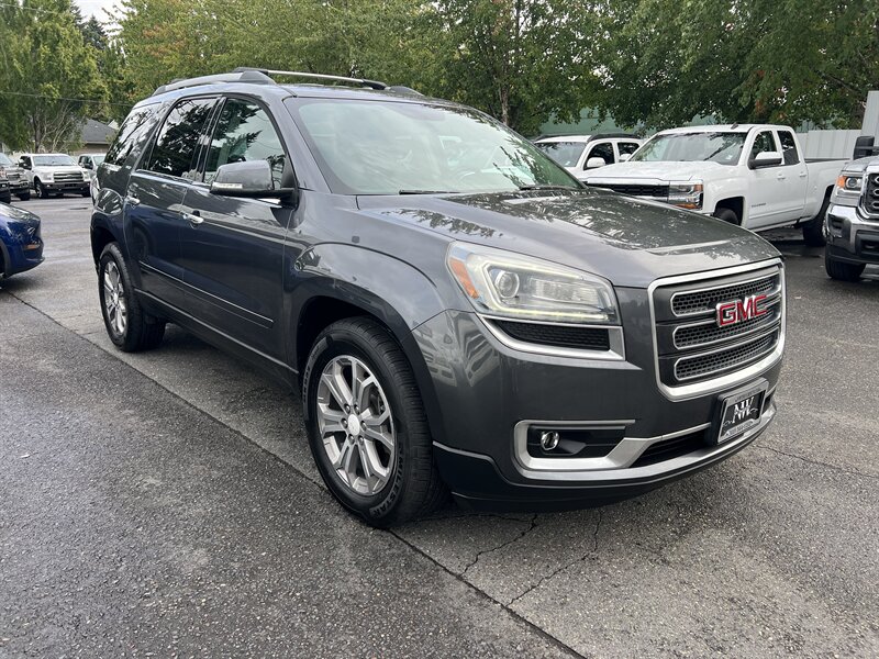 Clean CARFAX. Cyber Gray Metallic 2013 GMC Acadia SLT-1 AWD 6-Speed Automatic 3.6L V6 SIDI Clean CarFAX & Clean Title, Backup Camera, Bluetooth, Heated Seats, CARFAX BUYBACK GUARANTEE, AWD, Ebony Leather, 2-Way Power Front Passenger Seat, 7-Passenger Seating (2-2-3 Seating Configuration), 8-Way Power Driver Seat, Acoustical Insulation Package, Body-Color Bodyside Moldings, Body-Color Heated Power-Adjustable Outside Mirrors, Bose Premium 10-Speaker Audio System, Carpeted Removable Front 2nd & 3rd Row Floor Mats, Dual Downturn Tailpipe Exhaust, Inside Rear-View Auto-Dimming Mirror, Integral Spotter Blind-Zone Mirrors, Leather-Wrapped Steering Wheel, Power Rear Liftgate Body, Power Windows w/Driver Express-Down, Preferred Equipment Group 4SA, Rear Audio System Controls, Remote Vehicle Start, Steering Wheel Mounted Audio Controls, Tilt & Telescopic Steering Column, Tri-Zone Automatic Climate Control, Universal Home Remote, Variable Effort Power Steering.