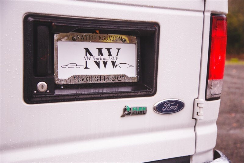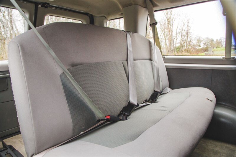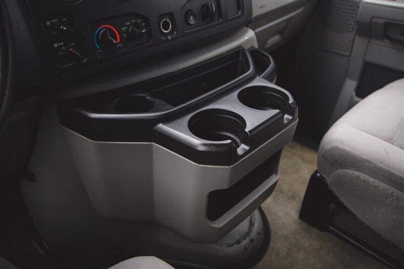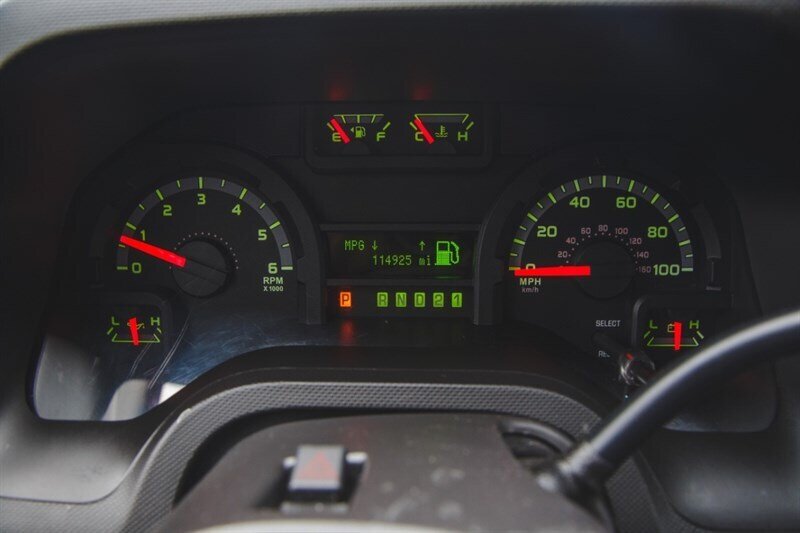 2014 Ford E-350 SD XL Econoline passenger van powered by a Triton 5.4L Flex Fuel V8 (255 hp, 350 ft.-lbs.), in excellent overall condition with below 115,000 miles (averaging under 9,000 miles/year) and a clean CARFAX with BUYBACK GUARANTEE. Factory/default features include heavy-duty van construction with robust GVWR, 16" x 7" steel wheels with 16" sport wheel covers, 4-wheel disc brakes with ABS and electronic stability control, front independent suspension and a 3.73 axle ratio for responsive highway performance. Interior equipment from the factory provides flexible passenger capacity (multiple bench rows and 11- or 15-passenger seating configurations with captain’s chairs), cloth captain’s/front bucket seats, driver and passenger door bins, seat-mounted armrests, power driver seat with manual lumbar, power mirrors and windows, tilt steering, speed control, tachometer and voltmeter. Comfort and convenience features include air conditioning, dual front-impact airbags with passenger-cancellable airbag, low tire pressure warning, variably intermittent wipers, chrome bumpers, AM/FM/CD stereo with 6 speakers and Bluetooth-ready radio prep, and a Class I trailer towing package. Optional/added items on this unit include the 100 lb Payload Package, 6-speaker radio prep package, multiple bench rows (3rd–5th row), and Order Code 723A.