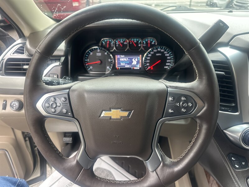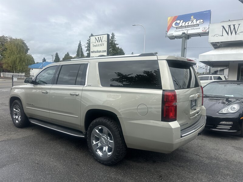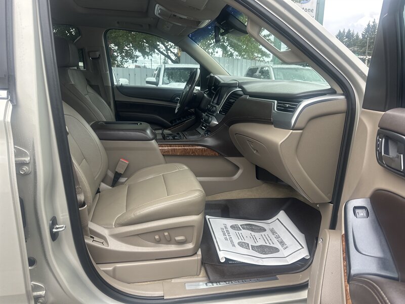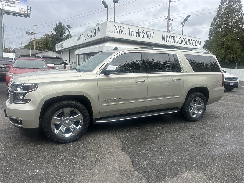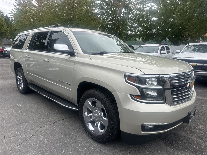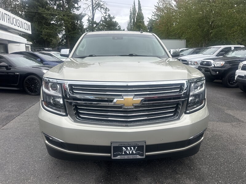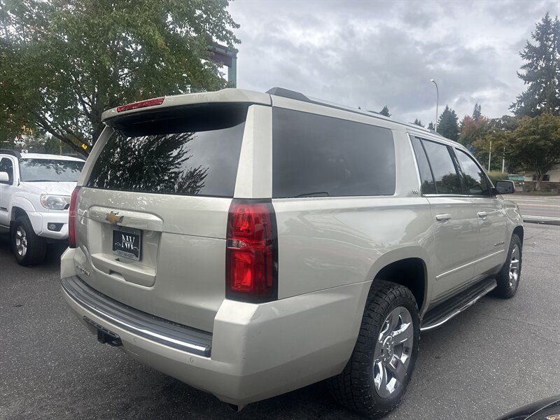 2015 Chevrolet Suburban LTZ 1500 in Tan exterior with Tan leather interior, powered by a 5.3L EcoTec3 FlexFuel V8 (355 hp / 383 lb-ft), 4WD, under 83,000 miles, excellent condition and a clean CARFAX.