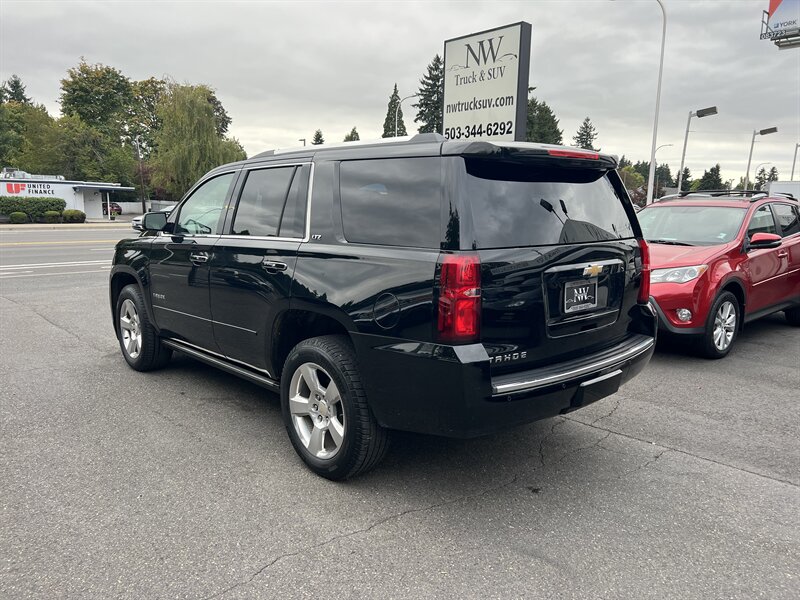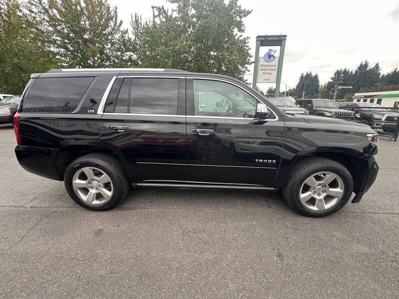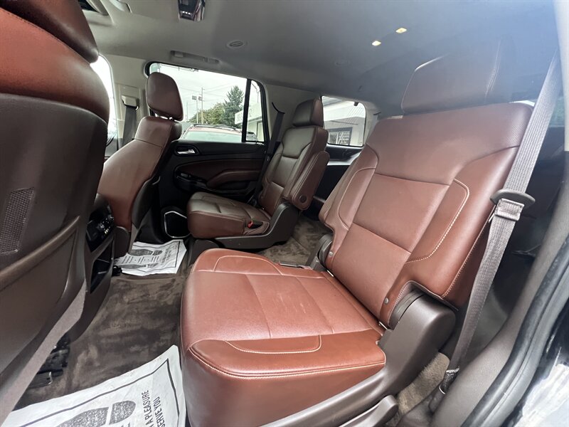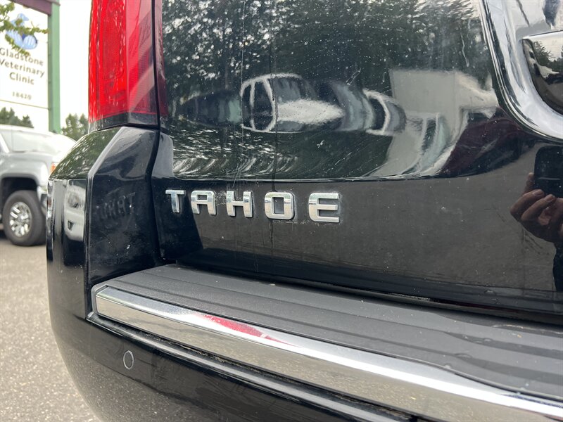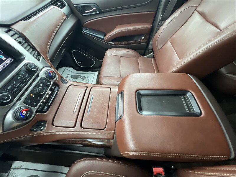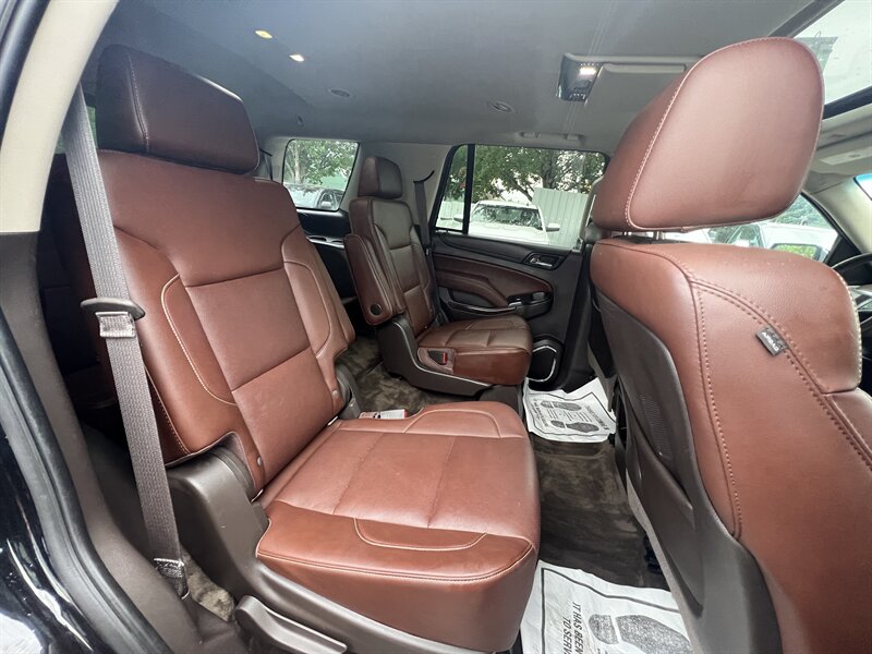 Clean CARFAX. Black 2015 Chevrolet Tahoe LTZ 4WD 6-Speed Automatic Electronic with Overdrive EcoTec3 5.3L V8 Clean CarFAX & Clean Title, Backup Camera, Bluetooth, Cooled Seats, Heated Seats, Navigation, Leveling Kit, CARFAX BUYBACK GUARANTEE, 4WD, Cocoa/Mahogany Leather, 3rd Row 60/40 Power Fold Split-Bench, 5 12-Volt Auxiliary Power Outlets, Auto-Dimming Inside Rear-View Mirror, Bose Centerpoint Premium 10-Speaker Surround Sound, Driver Inboard & Front Passenger Airbags, Floor Console, Fog Lamps, Forward Collision Alert, Front & Rear Parking Assist, Hands Free Power Liftgate, Heated 2nd Row Seats, Heated Leather Wrapped Steering Wheel, Heavy-Duty Rear Locking Differential, Keyless Start Switch, Lane Departure Warning & Safety Alert Seat, License Plate Front Mounting Package, Magnetic Ride Control Suspension Package, Memory Settings, Navigation System, Passive Entry System, Power Adjustable Pedals, Power Release 2nd Row Bucket Seats, Power Sunroof, Power Tilt & Telescoping Steering Column, Power-Folding Heated Outside Mirrors, Preferred Equipment Group 1LZ, Rear Cross-Traffic Alert, Rear Seat Blu-Ray/DVD Entertainment System, Remote Keyless Entry, Side Blind Zone Alert w/Lane Change Alert, Sun, Entertainment & Destinations Package, Universal Home Remote, Wireless Charging.