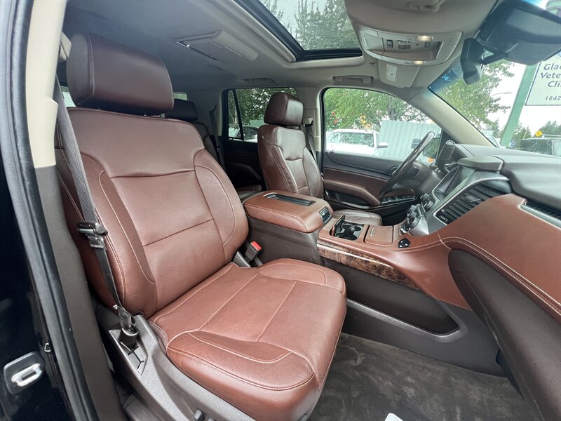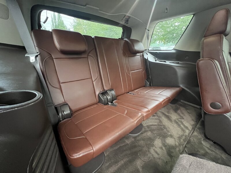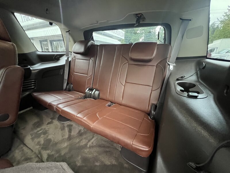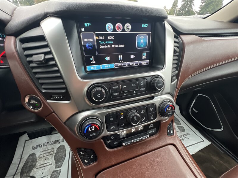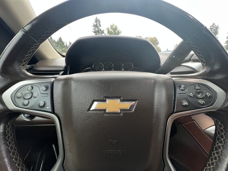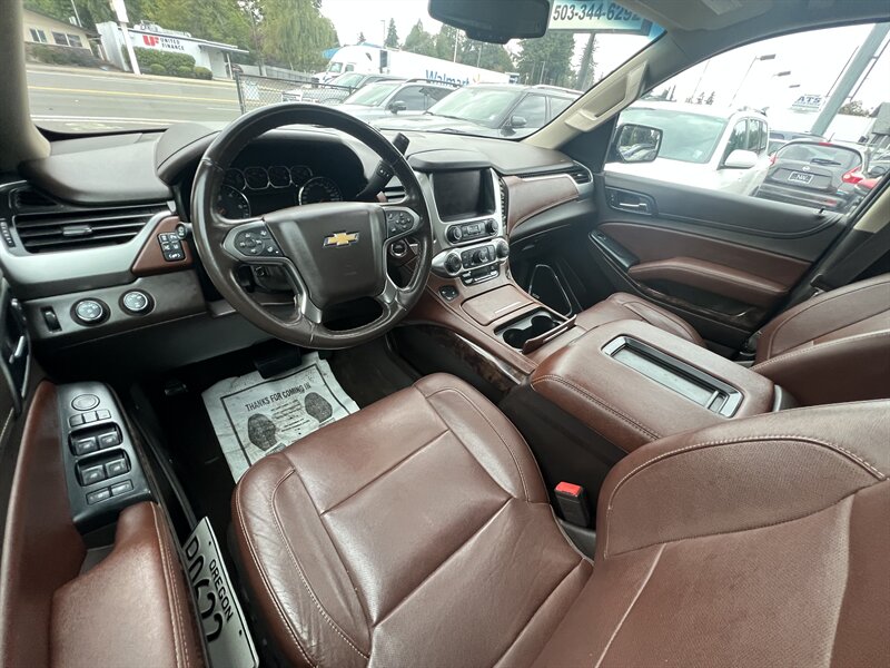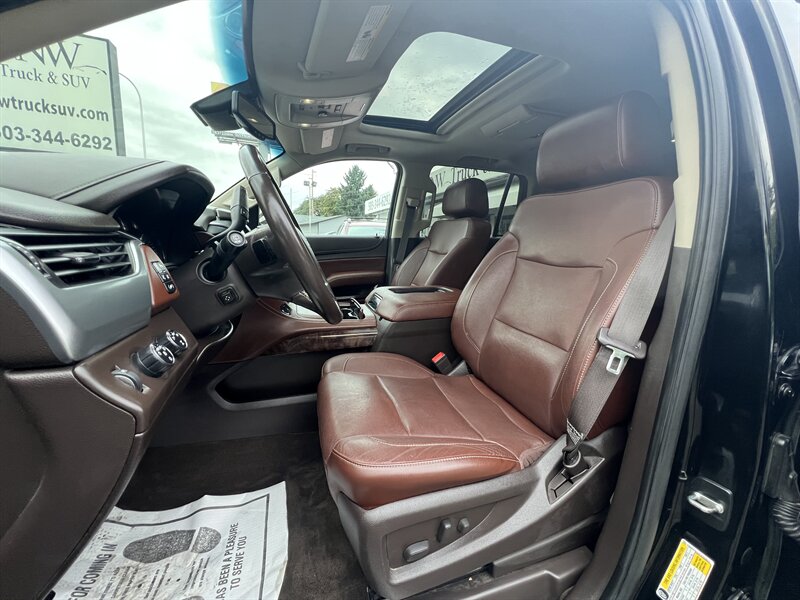 Clean CARFAX. Black 2015 Chevrolet Tahoe LTZ 4WD 6-Speed Automatic Electronic with Overdrive EcoTec3 5.3L V8 Clean CarFAX & Clean Title, Backup Camera, Bluetooth, Cooled Seats, Heated Seats, Navigation, Leveling Kit, CARFAX BUYBACK GUARANTEE, 4WD, Cocoa/Mahogany Leather, 3rd Row 60/40 Power Fold Split-Bench, 5 12-Volt Auxiliary Power Outlets, Auto-Dimming Inside Rear-View Mirror, Bose Centerpoint Premium 10-Speaker Surround Sound, Driver Inboard & Front Passenger Airbags, Floor Console, Fog Lamps, Forward Collision Alert, Front & Rear Parking Assist, Hands Free Power Liftgate, Heated 2nd Row Seats, Heated Leather Wrapped Steering Wheel, Heavy-Duty Rear Locking Differential, Keyless Start Switch, Lane Departure Warning & Safety Alert Seat, License Plate Front Mounting Package, Magnetic Ride Control Suspension Package, Memory Settings, Navigation System, Passive Entry System, Power Adjustable Pedals, Power Release 2nd Row Bucket Seats, Power Sunroof, Power Tilt & Telescoping Steering Column, Power-Folding Heated Outside Mirrors, Preferred Equipment Group 1LZ, Rear Cross-Traffic Alert, Rear Seat Blu-Ray/DVD Entertainment System, Remote Keyless Entry, Side Blind Zone Alert w/Lane Change Alert, Sun, Entertainment & Destinations Package, Universal Home Remote, Wireless Charging.