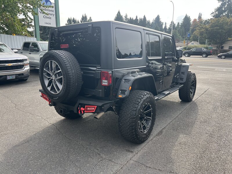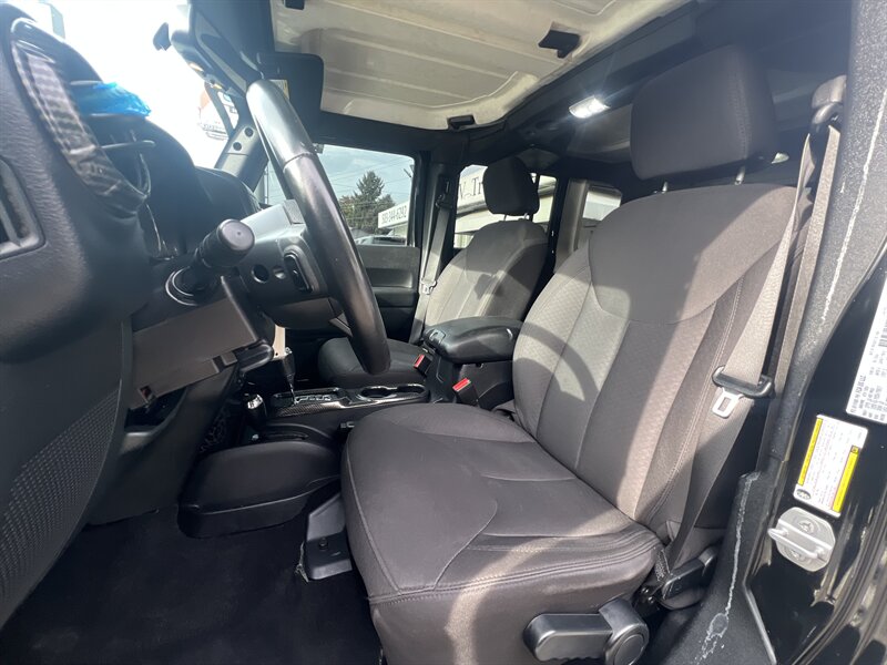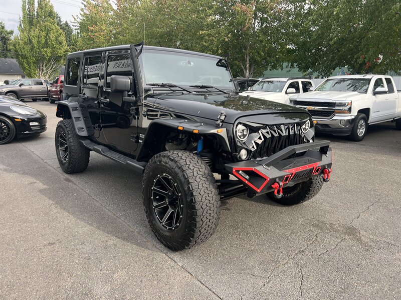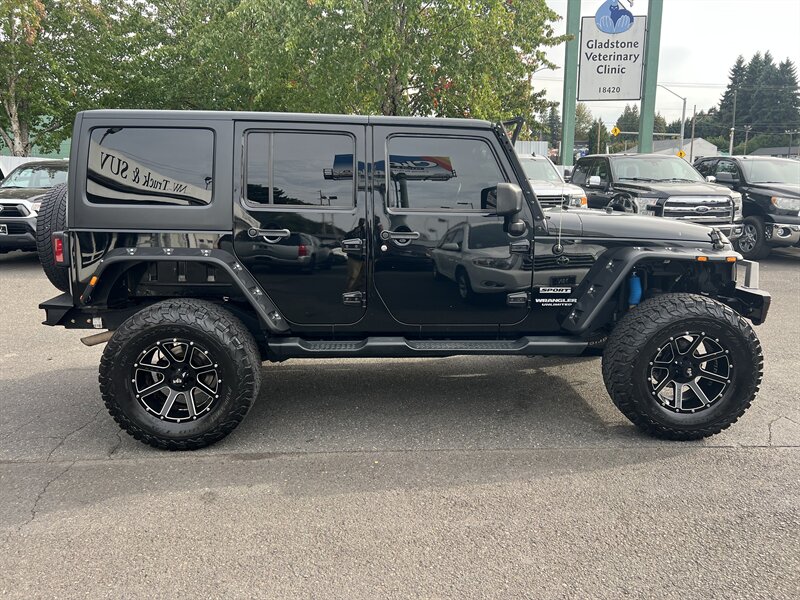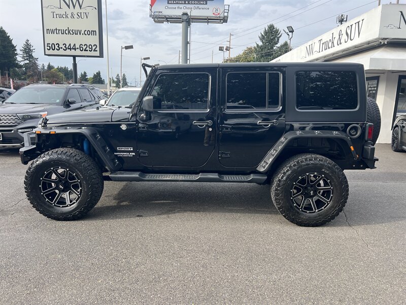 2015 Jeep Wrangler Sport 3.6L V6 4x4 in Black Clear Coat with a Black interior — lifted, HardTop, front and rear metal bumpers, under 91,000 miles (avg <8,000/yr), excellent condition and a clean CARFAX with CARFAX Buyback Guarantee.