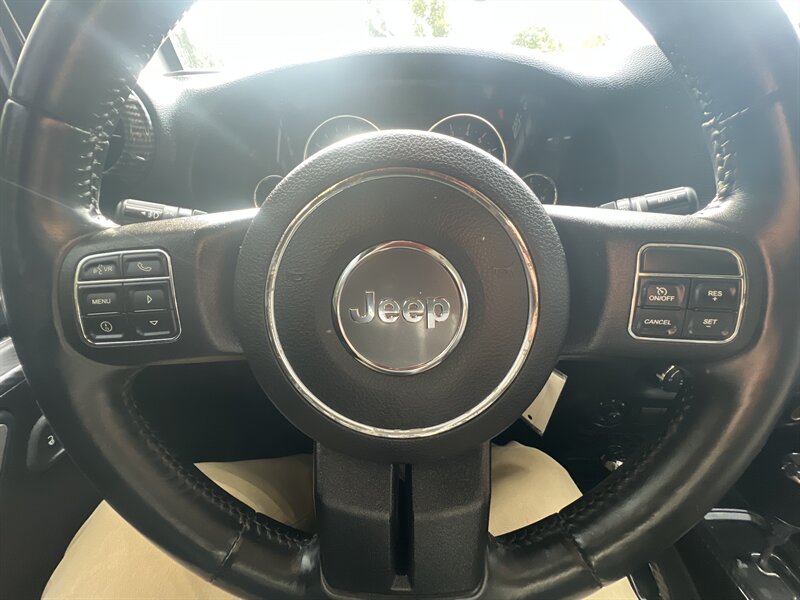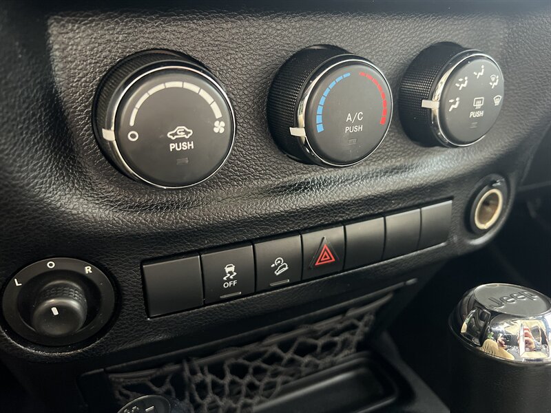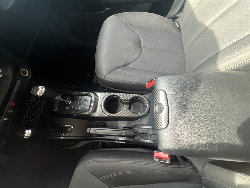 Comfort and convenience from factory include cloth bucket seats, air conditioning, tilt steering, cruise control, trip computer and a Uconnect 130 AM/FM/CD/MP3 audio system with 8 speakers, Bluetooth and steering-wheel audio controls. Additional equipment on this vehicle: 16" luxury styled steel wheels, heated seats, CD player, sunrider soft-top functionality, split folding rear seat, low tire pressure warning, and practical storage/trim such as front/rear metal bumpers and front center armrest.